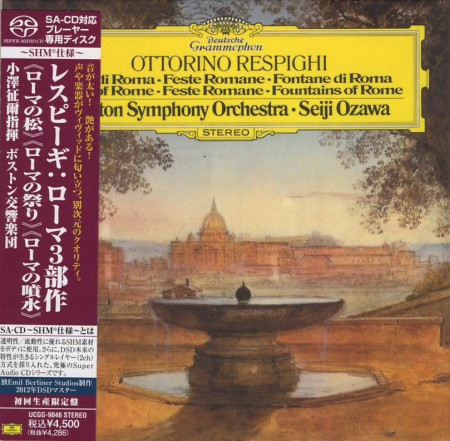 Questa splendida rimasterizzazione giapponese ripropone uno dei titoli più famosi del catalogo Deutsche Grammophon, vale a dire i due celebri poemi sinfonici Pini di Roma e Fontane di Roma di Ottorino Respighi nella insuperabile interpretazione della Boston Symphony Orchestra diretta da Seiji Ozawa. L’SHM-SACD (Super High Material SACD) è la versione più moderna del SACD che sfrutta materiali e tecnologie sviluppati per il SHM-CD per migliorare la risoluzione audio. Questi dischi sono realizzati con un tipo di policarbonato creato per i display a cristalli liquidi, che consente di ottenere una altissima trasparenza sonora e permette ai lettori di leggere il segnale in una maniera estremamente fedele. Questo supporto presenta anche una straordinaria fluidità, che si traduce in un maggiore realismo sonoro. Quello che ha fatto meraviglie con un formato a bassa risoluzione come il CD non può che garantire un enorme miglioramento sonoro con un supporto ad alta risoluzione come il SACD. Tra le caratteristiche più importanti di questi SHM-SACD vanno citati il layer a due canali, che assicura una riflettenza più che sufficiente e non comprime il file DSD, l’etichetta del disco stampata con uno speciale inchiostro verde chiamato Onsho Shiyou, che minimizza la dispersione del riflesso, e l’accuratissima scelta dei master, che comprendono sia files DSD già esistenti sia conversioni di nastri analogici.