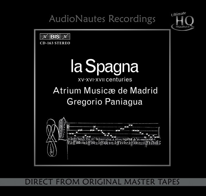 «Il disco originale fu registrato dal vivo da Robert von Bahr con un Revox A77, usando una coppia di microfoni a condensazione Sennheiser MKH 105. Anche ascoltandolo su un impianto estremamente semplice, questo disco rivela un’immagine sonora tridimensionale di sensazionale trasparenza e di eccezionale coerenza […] Questa riedizione pubblicata dall’etichetta AudioNautes Recordings merita una menzione particolare per diverse ragioni. Prima di tutto perché è stata realizzata a partire dai nastri analogici originali forniti dallo stesso producer e ingegnere del suono Robert von Bahr, ma soprattutto perché si tratta di uno degli ultimi progetti concepiti dal compianto Stan Ricker e non riesco francamente a immaginare un omaggio più opportuno e gradito di questa ristampa alla brillante rimasterizzazione a velocità dimezzata dell’indimenticabile Stan e all’altissima qualità del suo impianto elettronico di taglio progettato e realizzato dal mitico Prof. Keith O. Johnson. In particolare, Ricker testò innumerevoli lacche e ruppe perfino una testina di incisione nel tentativo di fissare sulla lacca tutti i dettagli percussivi di questa straordinaria registrazione» Qualità artistica 10/11; Qualità sonora 11/11 (Michael Fremer, AnaloguePlanet.com). Questo doppio LP fa parte della classifica del “Super Disc” della prestigiosa rivista The Absolute Sound fin dal tempo dei dinosauri. Il programma comprende una lunga serie di brani eseguiti con un’incredibile varietà di strumenti che abbracciano un orizzonte temporale di oltre due secoli, senza la presenza di alcuna voce. Il suono è molto chiaro, trasparente, complesso ed esteso nel registro acuto. La ricchezza armonica e l’ambienza della sala sono rese in maniera assolutamente esemplare. Il palcoscenico sonoro è profondo, ma non ampio in maniera innaturale. In questo il disco appare esemplare sotto tutti i punti di vista. Questa classica registrazione analogica del 1980 è stata realizzata, prodotta e pubblicata con estrema cura da Robert von Bahr utilizzando un Revox A77 e due semplici – probabilmente distanziati – microfoni a condensazione Sennheiser MKH105 dell’inizio degli anni Sessanta, che dimostrano meglio di qualsiasi parola la qualità di un solo segnale con interventi e una postproduzione limitati al minimo. La registrazione colpisce immediatamente con il suo suono fluido, naturale ed estremamente fedele e l’acustica della Cappella del Collegio Imperiale di Madrid è davvero splendida. Il programma – della durata di ben ottanta minuti – presenta una serie di straordinarie variazioni su tre famosi temi di origine spagnola (La Spagna, La Spagnoletta e la Pavana) elaborate da compositori noti e meno noti come Praetorius, Farnaby, Negri, Josquin Desprez, Ortiz. Grazie alla impeccabile interpretazione e “realizzazione” dei temi principali, il risultato appare vivace, gradevole ed estremamente eclettico.