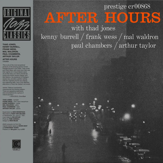 Pubblicato nel 1957 dall’etichetta, After Hours vede protagonisti i Prestige All Stars guidati dal trombettista Thad Jones, con la partecipazione del flautista e tenorsassofonista Frank Wess, del pianista Mal Waldron, del chitarrista Kenny Burrell, del contrabbassista Paul Chambers e del batterista Art Taylor. Il programma comprende quattro brani, tutti composti da Mal Waldron.